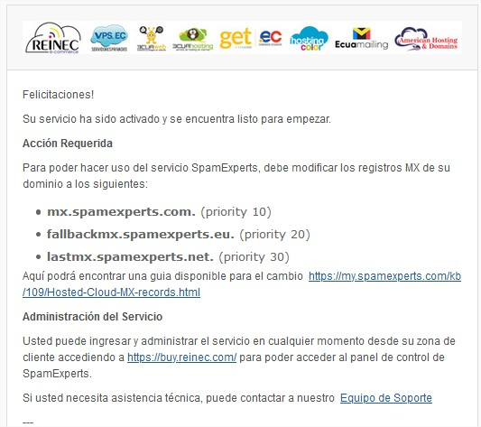 Paso 4: Esperar la propagación de este cambio de Zonas DNS, ahora podemos pasar al panel de administración de SpamExperts