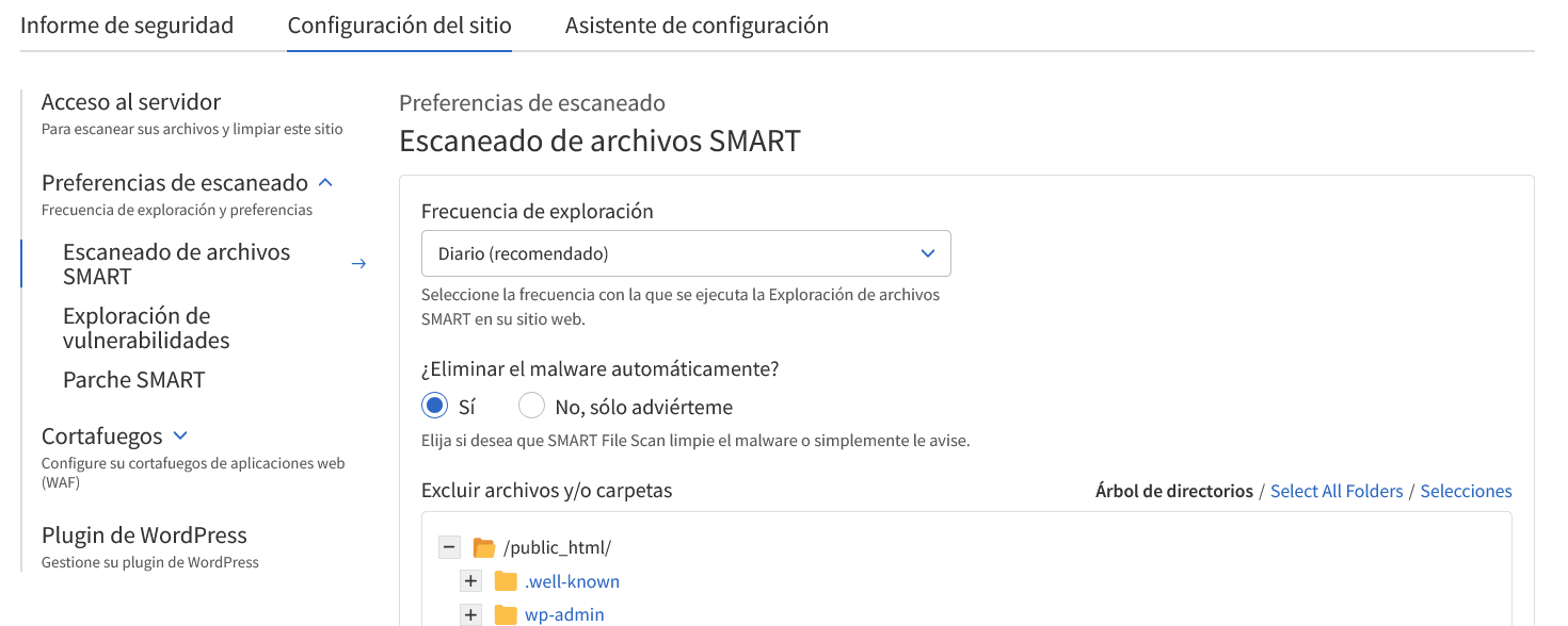 7.- Configure el Escaneo SMART: En la configuración SMART, elige si quiere que SiteLock elimine automáticamente el código malicioso o solo notifique para que se revise de forma manual (depende del plan adquirido).