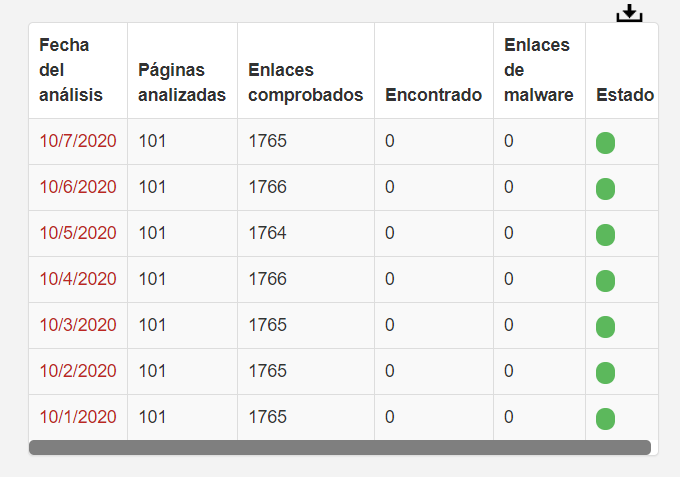3.- En la parte inferior podremos ver los reportes y las fechas de cada uno de ellos, el número de páginas, enlaces y los virus o amenazas encontradas.