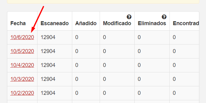 5.- Aquí encontraremos las fechas de escaneo, si deseamos conocer los detalles presionamos sobre la fecha del análisis