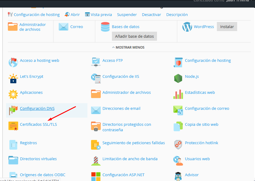 1.- Primero ubique la opción certificado SSL en su panel de control.