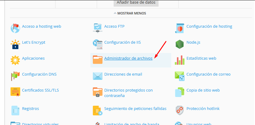 7.- Ingrese al panel de control de su hosting en la opción de Administrador de archivo