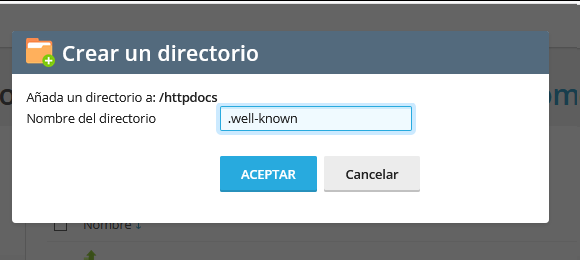6.- Al terminar de llenar los datos del usuario, se le indica la ruta en donde debe crear la carpeta, archivo y contenido del archivo (Se hace en su hosting).