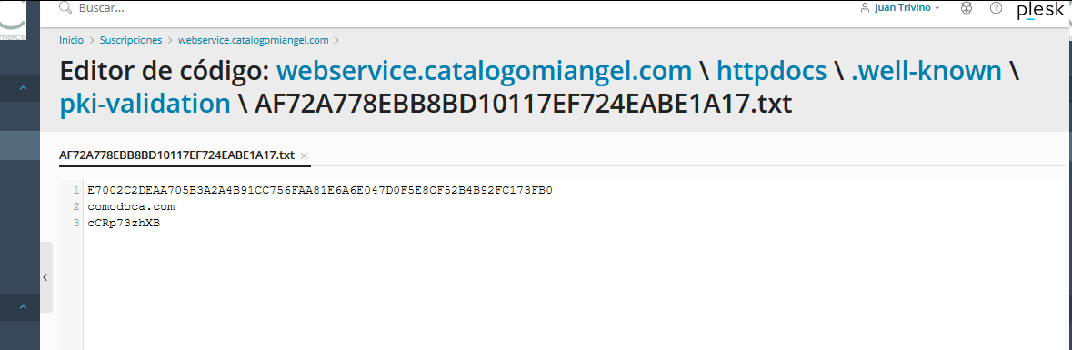 11.- Una vez que descargue y guarde el certificado, abra el archivo con un editor de texto para copiar el certificado y pegarlo en su panel de control