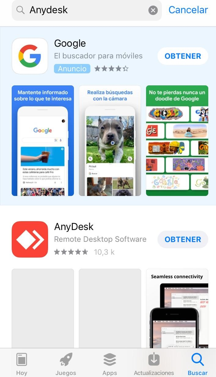 2) Busque AnyDesk entre las aplicaciones disponibles y haga clic en el botón Obtener.