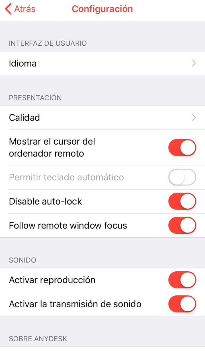 5) Por último vaya a la configuración de la App, y active las opciones para que permita la conexión remota