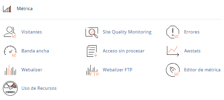 2. Vaya a la sección Métricas. Ahí encontrará información relevante sobre el uso de su hosting, entre las que podemos resaltar: información de visitas a su sitio web, errores, uso de banda ancha, entre otros.